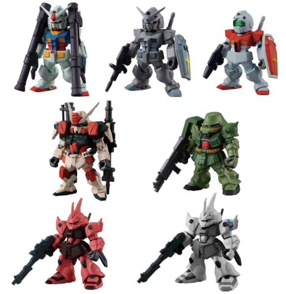 Mighty Gundam mechs are reduced to half-pint size and given fixed-pose stature in the 22nd edition of the FW Gundam Converge series of miniature toys. A total of seven Gundam mechs are featured in the set with each toy individually boxed with a piece of chewing gum.